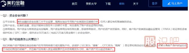這時(shí)候就要看你的錢(qián)是給了國(guó)內(nèi)代理商幫你看管,還是直接給了專(zhuān)用特殊銀行幫你看管。一般底層美國(guó)券商為了防止國(guó)內(nèi)代理商跑路或者經(jīng)營(yíng)不善,都會(huì)采取隔離手段,也就是你通過(guò)代理商平臺(tái)購(gòu)買(mǎi)美股的資金會(huì)存放在專(zhuān)用的特殊銀行,當(dāng)代理商違約或破產(chǎn)時(shí),底層券商就可以將用戶(hù)的錢(qián)返回給用戶(hù) 。還是上面兩個(gè)代理商的例子,我們來(lái)看下。美豹