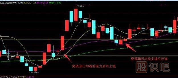30日均線是一只股票重要的均線,在股價在30日均線下方時,該均線則成為一個阻力位,但是如果股價突破該阻力位的話股價會有一波上漲;當(dāng)在股價在30日均線上方時為股價的強力支撐線,但再拿問財寶客戶關(guān)注的中航資本做例子。1月16日股價突破30日均線,但受到均線的壓力后兩天連續(xù)下跌,1月21日以漲停板站上30日均線,股價上漲近30%。2月9日,中航資本股價跌至30日均線,