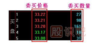 買(mǎi)盤(pán):包括買(mǎi)一、買(mǎi)二、買(mǎi)三、買(mǎi)四、買(mǎi)五,五個(gè)委托買(mǎi)入價(jià)格,其中買(mǎi)一為當(dāng)前的最高審買(mǎi)價(jià)格。以17年1月12日啟迪桑德(000826)為例,如果你想買(mǎi)入,就必須高于或等于買(mǎi)一33.22元,如果掛買(mǎi)二的價(jià)格,就必須排隊(duì)等候,等股價(jià)跌到了買(mǎi)二的價(jià)格才有可能成交。