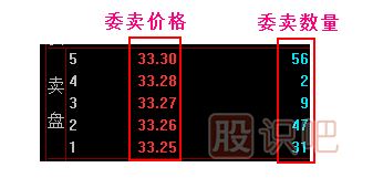 五檔盤(pán)口由賣(mài)盤(pán)和買(mǎi)盤(pán)兩部分組成: