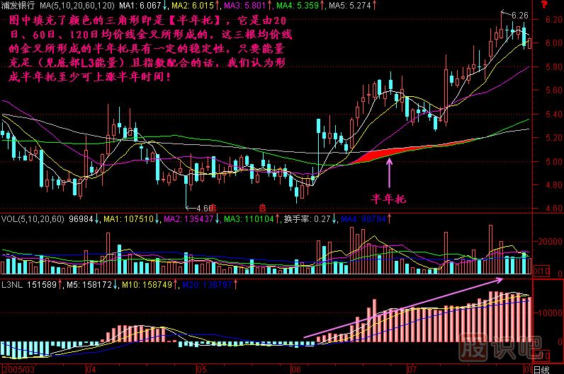3、20日均線、60日均線、120日均線形成了半年托,理論上講,行情會(huì)漲半年: