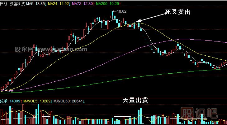 凱盛科技(600552)該股在連續(xù)上漲之后出現了圓頂的形態(tài)。高位漲停封不住,同時中線指標MACD出現了高位死叉的賣出信號,行情一路盤跌。后來跌破24日生命線之后更加明確了圓頂的位置。反彈碰到"生命線"被打了下來,并放出天量,2007年5月28日換手率16.94%,次日換手率19.84%,出貨明顯。這個主力是“先知先覺”地知道政策消息面的變化,提前賣出手中籌碼,提前地回避了5月30日的大暴跌,之后的連續(xù)縮量6個跌停板,慘不忍睹。投資者只有掌握了簡單的逃頂絕招才可以成功回避巨大的風險,做股票不能只看到利潤而忘卻了風險意識。