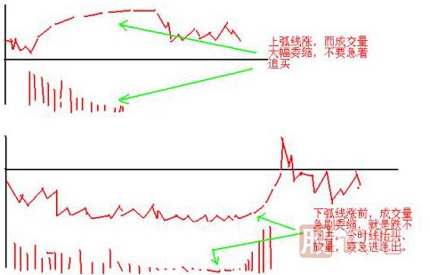 條件1、上弧線漲,漲時成交量委縮要小心跌。2、下弧線漲,成交量委縮時要小心漲。