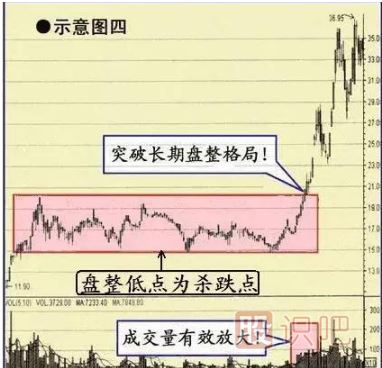 一般股價在箱體內(nèi)反復(fù)震蕩,在成交量放大配合下,股價突破箱體頂部,向上拉升,形成了很好的買入位置。