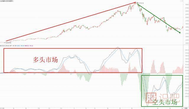 快慢線運(yùn)行在0軸之上為多頭市場;運(yùn)行在0軸之下為空頭市場。