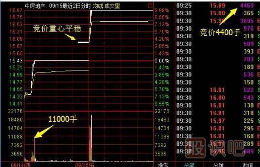 競價分時常見兩種。第一種是重心逐漸下移,不佳;第二種重心平穩(wěn),最佳。對應(yīng)的案例有銀江股份和中房地產(chǎn),兩者競價均放量,但分時不同,最終的結(jié)果也不同。