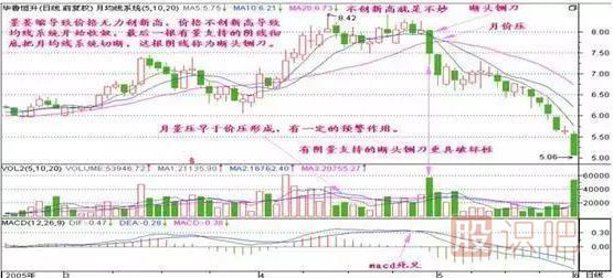 圖形特征:當股價在高位盤整后漸漸下滑,此時5日、10日和20日均線形成的均線系統(tǒng)呈現收斂狀態(tài)。此時如出現一根陰線跌破三條均線形成一陰斷三線的“斷頭鍘刀”,則應警惕有一輪跌勢。特別是帶有較大成交量的陰線,則更有下跌的可能。