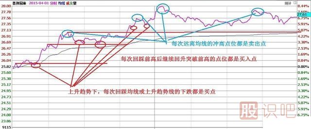 上升趨勢下,每次回踩均線或上升趨勢線的下跌都是買點(diǎn);