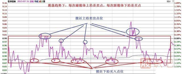 震蕩趨勢下:每次碰箱體上沿是賣點(diǎn),每次踩箱體下沿是買點(diǎn)