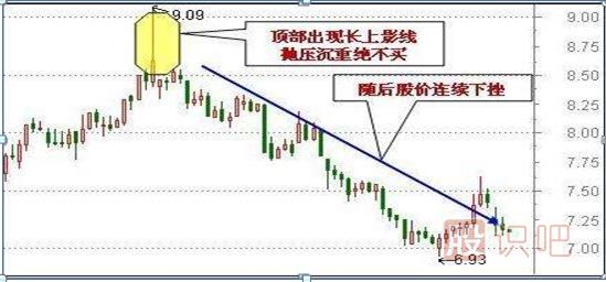 個股在上升趨勢中運(yùn)行,突然某個60分鐘內(nèi)快速拉升,隨后拋盤不斷涌出,導(dǎo)致股價回落至上一個60分鐘K線收盤價附近,留下一根長長的上影線。此K線形態(tài)意味著多頭積極追高,但高位拋壓較重,股價系那個上攀越艱難,行情很可能調(diào)頭向下。