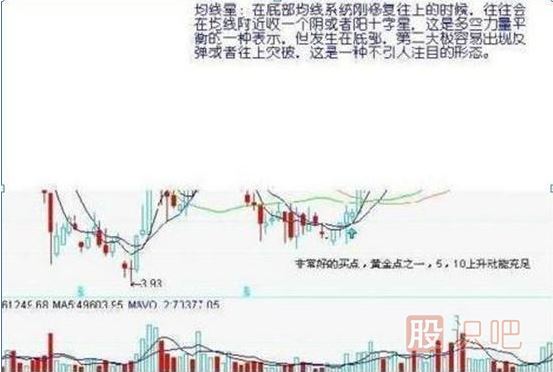在底部均線系統(tǒng)剛修復(fù)往上的時(shí)候,往往會(huì)在均線附近收一個(gè)陰或者陽(yáng)十字星,這是多空力量平衡的一種表示,但發(fā)生在底部,第二天極容易出現(xiàn)反彈或者往上突破,這是一種不引人注目的形態(tài)。