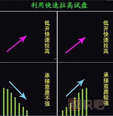 1)高開后快速拉高。開盤高開后,主力通過快速拉高股價(jià)的方式試盤,目的是判斷盤中追高的意愿是否強(qiáng)烈。