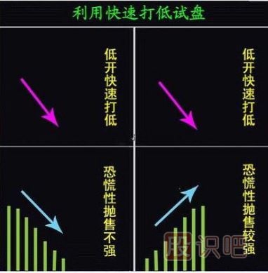 2)高開后快速打低。開盤高開后,主力通過快速打低股價(jià)的方式試盤,目的是判斷盤中獲利了解的意愿是否強(qiáng)烈。