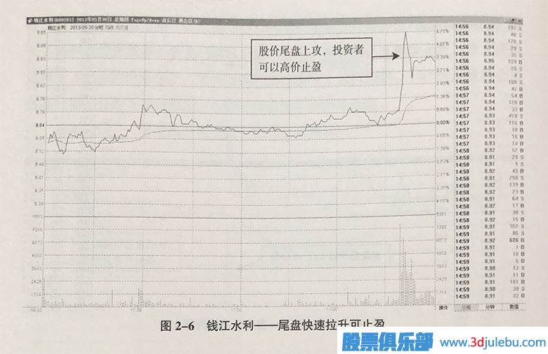 錢(qián)江水利—尾盤(pán)快速拉升可止盈,如圖2-6所示。