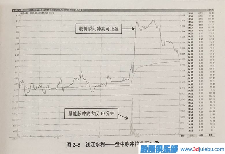 錢(qián)江水利盤(pán)中脈沖拉升可止盈,如圖2-5所示。