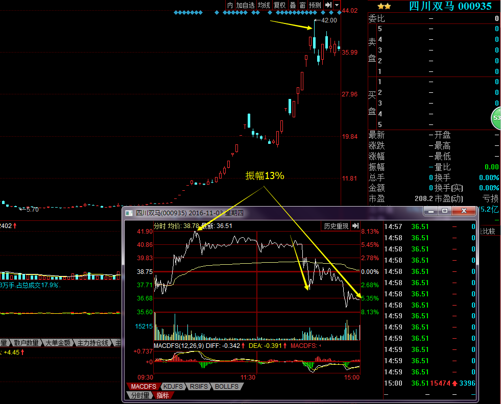 四川雙馬2016/12/5,雖然股價跌破20日線有過兩次反彈,但總體來看,給參與的機(jī)會并不多,如果是短線打板選手,可以說并沒有給肉吃的,漲停后的日日也僅僅是有個小高開罷了。