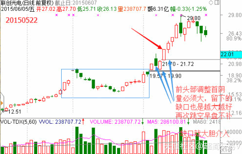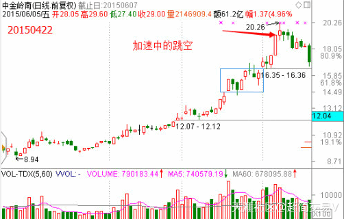 1、必須盤整突破或者上升加速的跳空缺口,缺口越大越好。