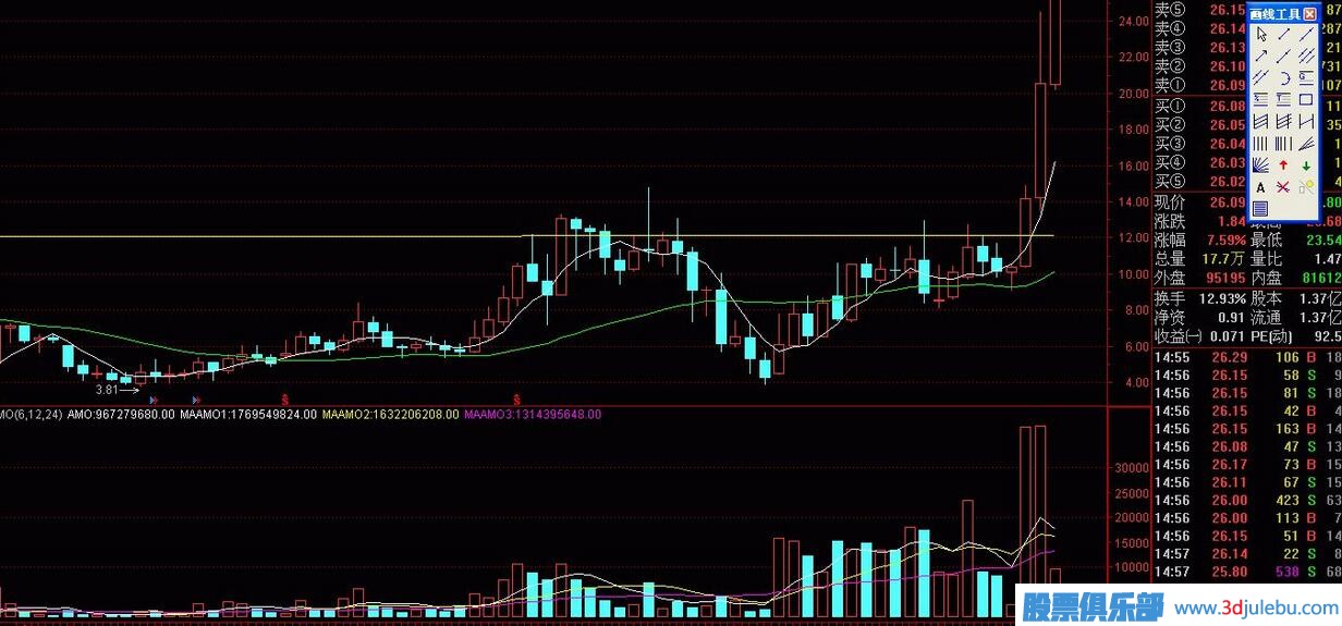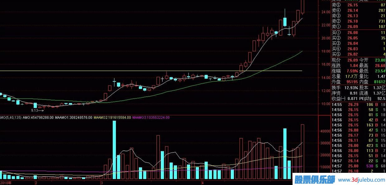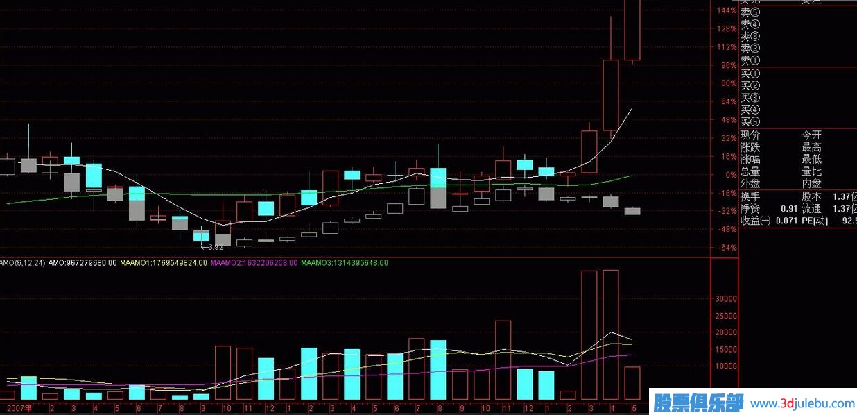 第三,AMO,也提供了是大行情的信息,5/40/135均量線,標(biāo)準(zhǔn)的金叉多頭中。