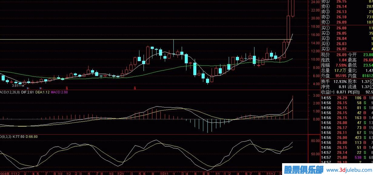 第二,何時(shí)買(mǎi)入是最佳買(mǎi)入呢?自然是距離14.77元越近越好了。這時(shí)須用日線看盤(pán)指標(biāo),盯住,等待最佳買(mǎi)入時(shí)機(jī)了,這是在戰(zhàn)略性問(wèn)題解決后的戰(zhàn)術(shù)性技巧問(wèn)題,但也有訣竅。