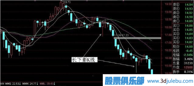 從上圖中可以看出,雖然K線收出了長下影線,但股價并沒有獲得支撐,而是繼續(xù)下跌。