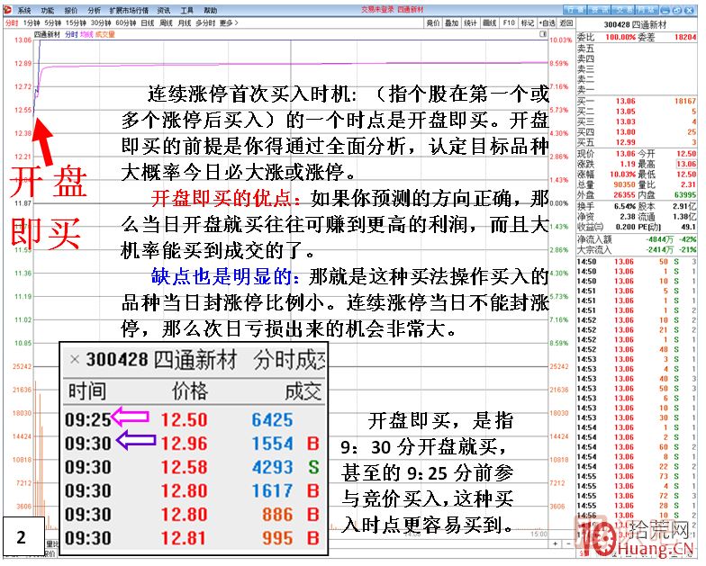 連續(xù)漲停首次買入時機(jī): (指在第一個或更多個漲停后買入)