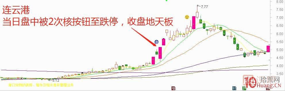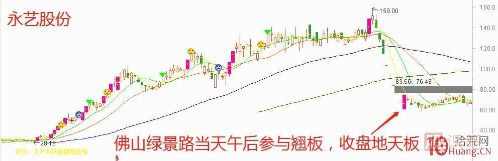 由于公司遭遇重大利空打擊或高位強莊股資金鏈斷裂造成的連續(xù)一字跌停后的地天板類型,這一類型也是最為經典簡單的籌碼博弈類型,是佛山綠景路最擅長的翹跌停模式,這一類型在15-16年尤為居多。