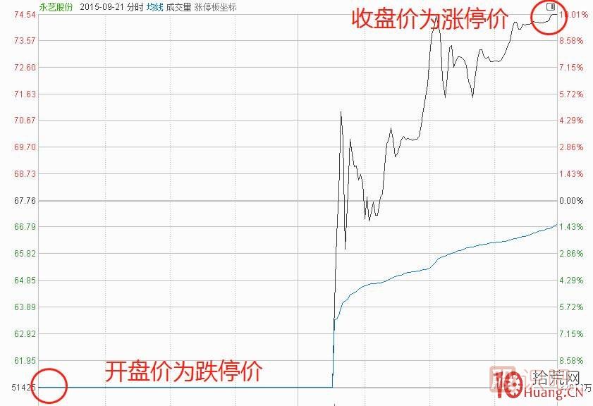當天開盤價為跌停價,收盤價為漲停價,全天振幅達到20%的漲停板,即為最標準的地天板。那么,如果在跌停價買入,收盤的日內浮盈高達22%。對于其他一些跌停附近開又漲停的變體,這里就不展開了。