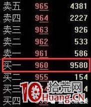 盤口特征: 買盤買一以下全是大買單,但賣盤卻只有賣一有較大賣單,其余賣檔掛單較為正常,并且賣一大賣單吃掉后又反復(fù)出現(xiàn)。