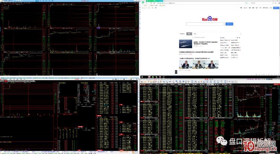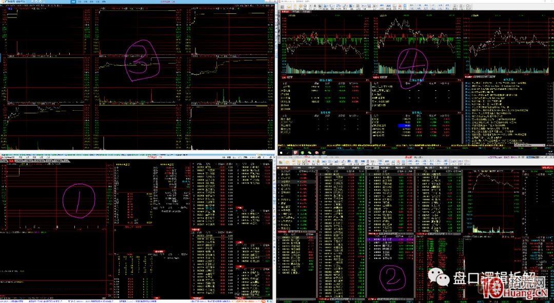1)看指數(shù),看個股(四塊屏幕的截圖放在一起了)