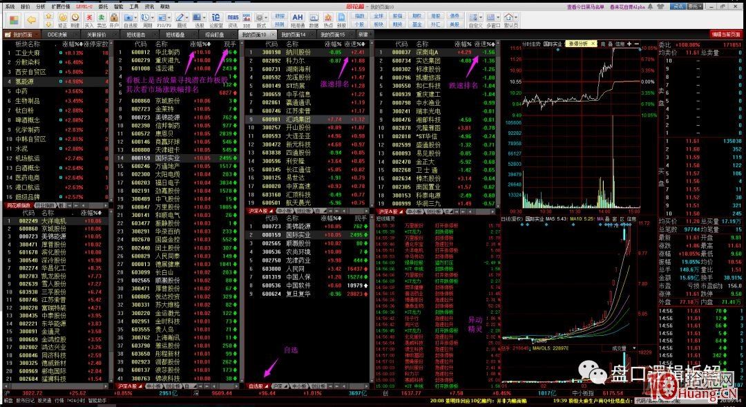 最后,如果屏幕多,可以適當(dāng)增加,例如加上炸板股票池,潛在反包票,漲停板排序(現(xiàn)量,觀察炸板),指數(shù)走勢,個股分時,期貨漲跌,等等。
