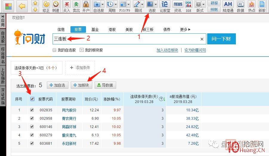 同花順軟件里面自帶一個“問財”功能,去界面以后,輸入當(dāng)天的連板,然后加到對應(yīng)自定義板塊就行(加之前,記得把前一天的個股刪掉)