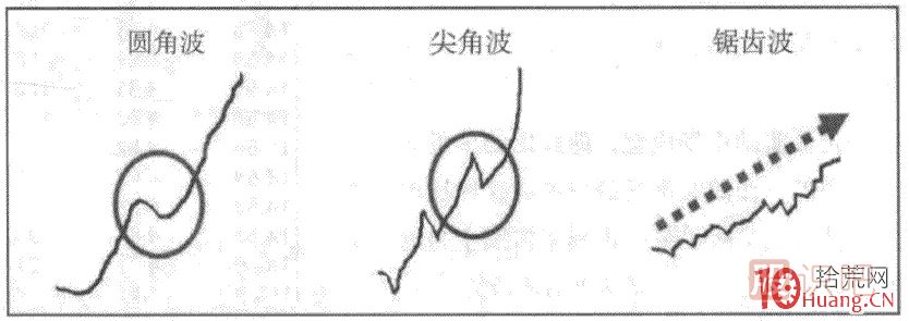 總之,圓角波、尖角波和鋸齒波這三種分圖形在大多數(shù)情況下不是單一出現(xiàn)的。它們往往是在一天的走勢(shì)中交替出現(xiàn)的,但以一種走勢(shì)為主,其他走勢(shì)為輔。
