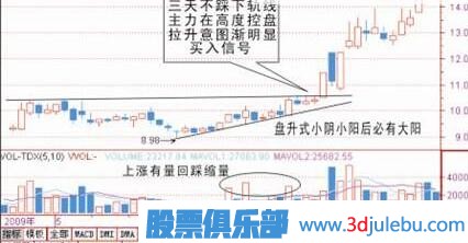 對于一般穩(wěn)健投資者來說,或者是不喜歡追漲,選擇此類小陰小陽蓄勢待發(fā)的圖形,當發(fā)現(xiàn)時逢低買進持股不到一周必會大陽突破,享受上升浪賺錢的樂趣。