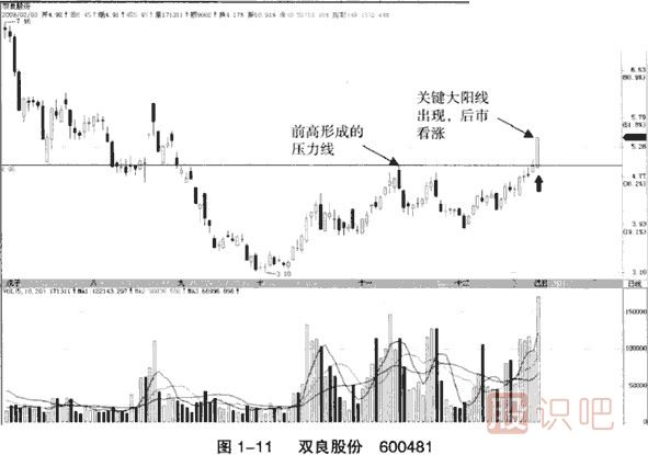 (1)具有突破性質(zhì)的大陽線是最值得關(guān)注的大陽線,在實(shí)戰(zhàn)中其地位非常重要。一般來說,大陽線突破意味著趨勢的開始。