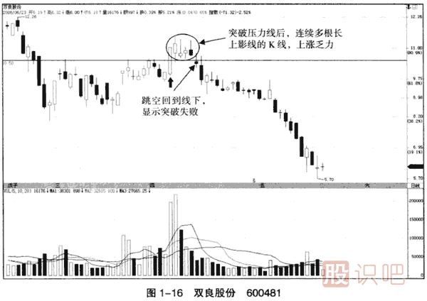 (4)圖1一11和圖1-15,雖然走勢(shì)有些類似,但因其所處的位置不同,其走勢(shì)有天壤之別。
