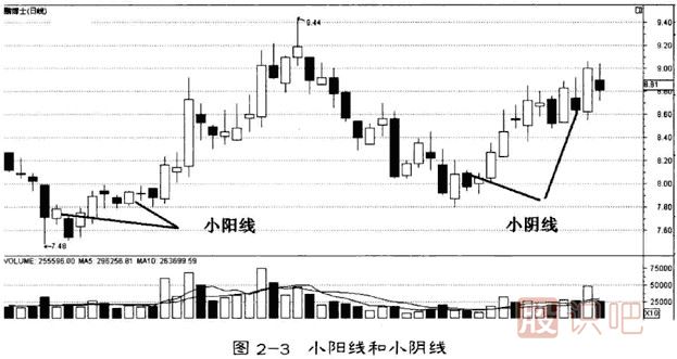 小陽線的波動范圍較小陽星增大些,多頭稍占上風(fēng),但上攻乏力,表明行情發(fā)展撲朔迷離(如圖2-3)