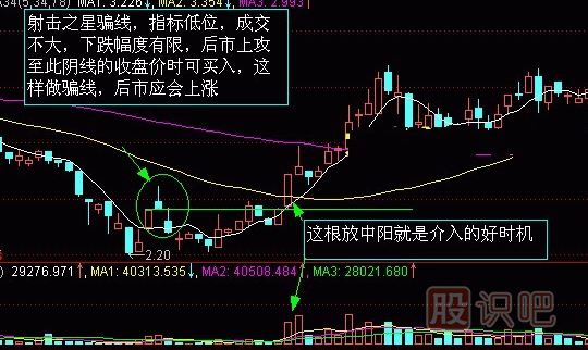 5.理想狀態(tài)是射擊之星(流星線)次日是向下跳空的長(zhǎng)長(zhǎng)的陰線與射擊之星的實(shí)體有缺口,缺口越大越有利。