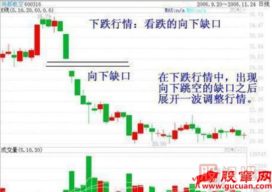 7、向下的缺口如沒(méi)有成交量的支持,此缺口并不一定很快回補(bǔ);
