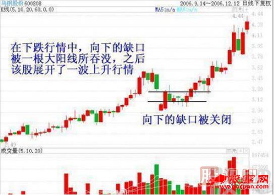 缺口就是股價(jià)在快速大幅變動(dòng)中會(huì)有一段價(jià)格沒(méi)有任何交易,顯示在股價(jià)趨勢(shì)圖上就是一個(gè)真空區(qū)域,這個(gè)區(qū)域就是“缺口”,通常也叫跳空。當(dāng)股價(jià)出現(xiàn)缺口的時(shí)候,經(jīng)過(guò)了幾天,或更長(zhǎng)時(shí)間的變動(dòng),然后反轉(zhuǎn)過(guò)來(lái),又回到了原來(lái)缺口的價(jià)位時(shí),就成為缺口的封閉,又稱補(bǔ)空。