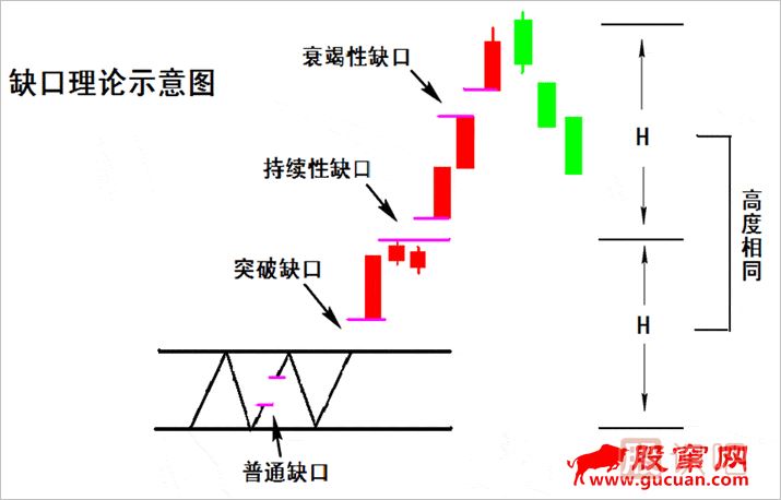缺口,通常又稱跳空,它是指證券價格在快速大幅波動中沒有留下任何交易的一段真空區(qū)域。是股票分析的一種特殊形態(tài)類型。缺口理論是證券分析中一種重要的分析理論。