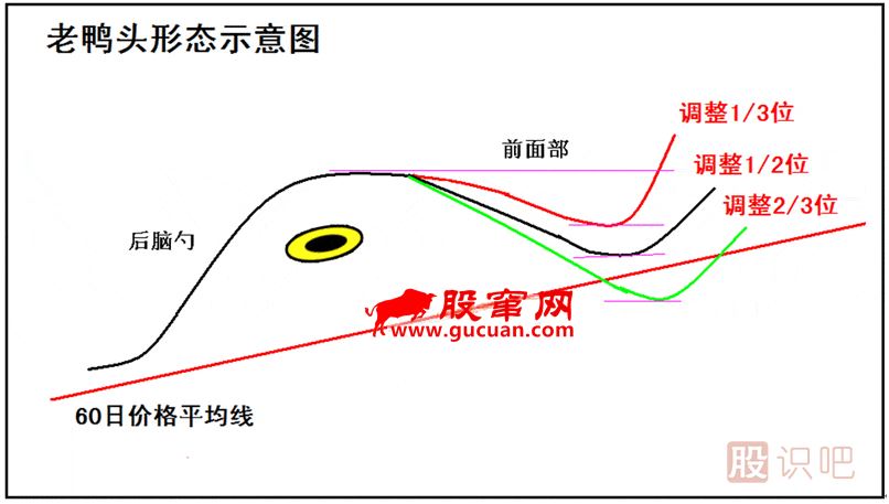由上兩幅圖可知,老鴨頭形態(tài)的十大要點解析如下: