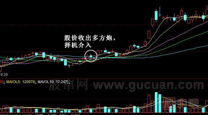 但多方炮的圖形出現(xiàn)之后,并不是說(shuō)股價(jià)一定會(huì)上漲,多方炮的K線組合只能稱為“炮臺(tái)”,搭好了炮臺(tái)后,還要看主力是不是真的想開(kāi)炮,還要看炮彈是不是會(huì)響,否則多方炮很可能會(huì)變?yōu)?rdquo;啞炮“。
