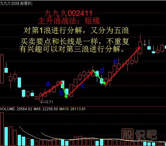 短線戰(zhàn)法主要是對(duì)三浪上漲中的升浪的分解。要點(diǎn)和長線戰(zhàn)法相似