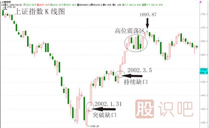 而上證指數(shù)2002年1月31日的跳空缺口也是一個(gè)突破缺口。也是大盤從1339點(diǎn)上漲到1693點(diǎn)這一輪中級(jí)反彈行情啟動(dòng)的重要標(biāo)志。