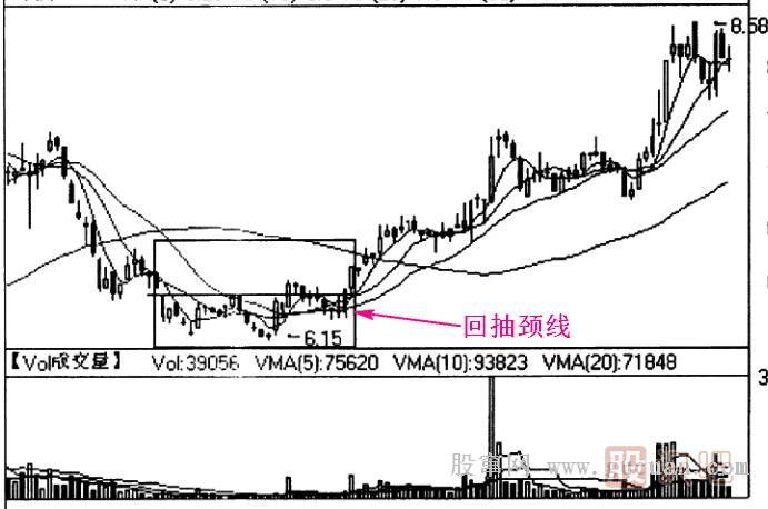 (2)在股價(jià)突破頸線之后,市場(chǎng)習(xí)慣于進(jìn)行反撲,但在頸線附近股價(jià)止跌回升。