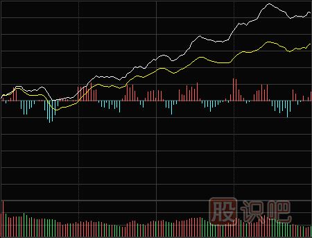 2)黃色曲線:大盤不含加權(quán)的指標(biāo),即不考慮股票盤子的大小,而將所有股票對指數(shù)影響看作相同而計算出來的大盤指數(shù)。
