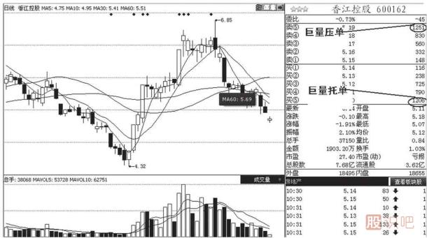 一般情況下,一旦巨量托單出現(xiàn),股價就會在巨量托單處企穩(wěn)。如果股價出現(xiàn)連續(xù)的殺跌走勢,下方出現(xiàn)巨量托單的時候,股價就會止跌出現(xiàn)上漲。只要巨量托單沒有消失,就會對股價的下跌起到抑制作用。因為如果股價過分下跌,對主力的后期操作也是不利的,股價跌的太多,主力就需要花費更多的成本重新把股價拉上來。而利用巨量托單,只需要一筆大單就可以成功地阻止股價的下跌,因此可以省去很多麻煩。
