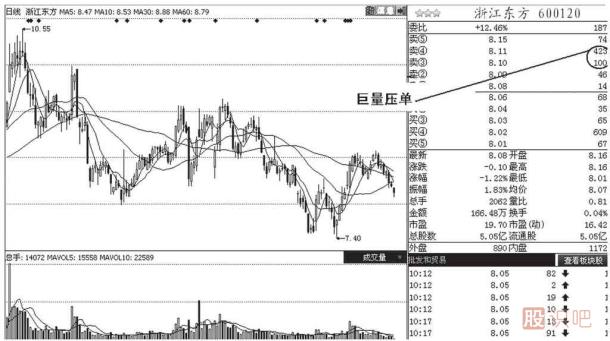 如果在股價上漲的途中發(fā)現(xiàn)出現(xiàn)大筆賣單,只要大單不消失,或被吃掉,或是主動地撤掉,那股價就往往很難突破巨量壓單所在的價位!巨量壓單的出現(xiàn)往往意味著主力這樣的目的:壓制股價上漲,為洗盤打下基礎(chǔ);壓制股價上漲,控制股票價格降低建倉成本;放上大賣單讓投資者誤認(rèn)為是洗盤,從而達到出貨的目的。這是主力放上大賣單最主要的三個原因。對于進行短線操作的投資者而言,只要大單沒有撤掉,或沒有被一筆買下,投資者是不可以入場進行操作的!