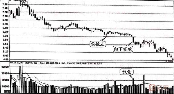 前低跌破賣出的原理是:由于主力莊家尚未完成全部的出貨動作,大部分籌碼還未出來,需要通過制造一個反彈,讓散戶以為調(diào)整已經(jīng)結(jié)束而入場接貨,當(dāng)主力覺得籌碼出得差不多時,終于露出了真實(shí)面目,兇狠的砸盤導(dǎo)致反彈前的低點(diǎn)被毫無抵抗地跌破。 此時,前低點(diǎn)將會變成又一輪下跌的起點(diǎn),原來的支撐變成以后股價的強(qiáng)大壓力。