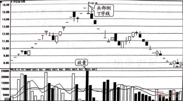 從頭部倒T字線的形狀中可以看出,在買賣雙方的爭(zhēng)斗中,一開(kāi)始買方一度占據(jù)丁上風(fēng),但是在賣方的頑強(qiáng)抵抗之下,買方的力量持續(xù)減弱,最終退回到目口原先發(fā)動(dòng)攻擊的地方。此時(shí)買方其實(shí)已經(jīng)是強(qiáng)餐之末,頭部倒T字線表明了賣方的潛在力量已經(jīng)得到了充分的積聚,股價(jià)隨時(shí)都會(huì)出現(xiàn)逆轉(zhuǎn)或者下跌。